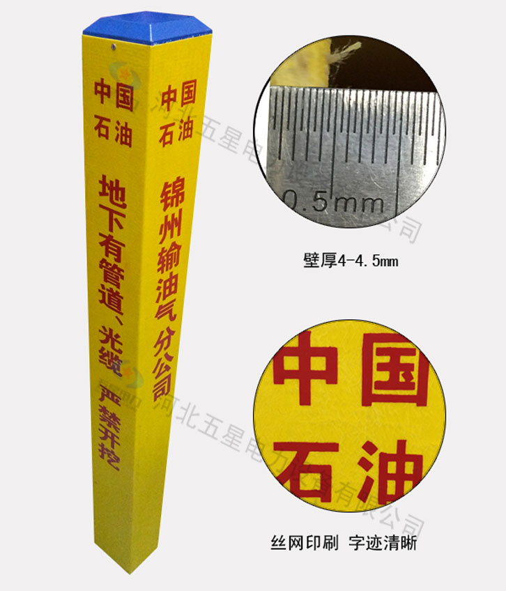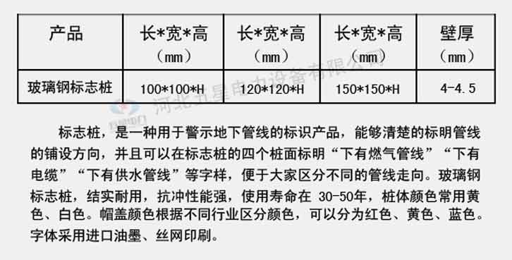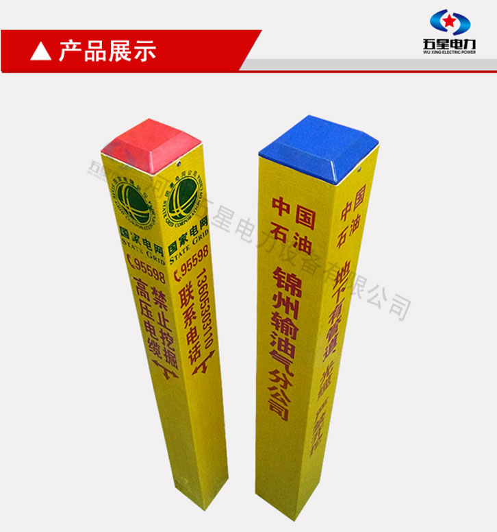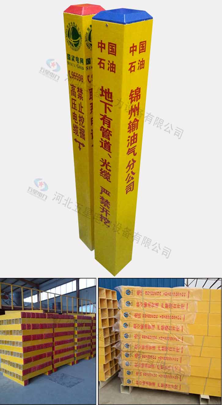 玻璃鋼標志樁是一種用于警示地下管線的標識產(chǎn)品,玻璃鋼標志樁結實耐用,抗沖性能強,使用壽命長達30-50年。