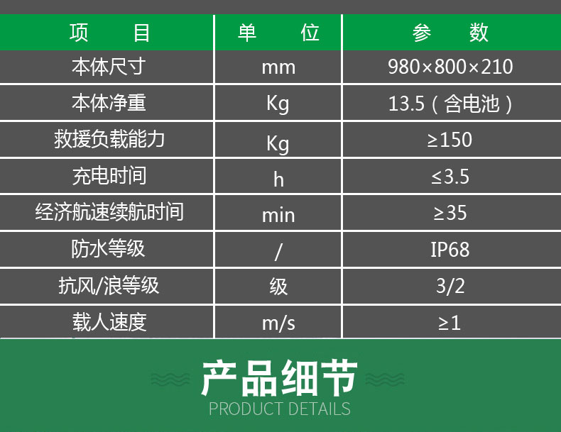 | ★控制方式 | 無線遙控 | 遙控距離:遙控器與救生圈距離500m時,可正常通訊。 | |