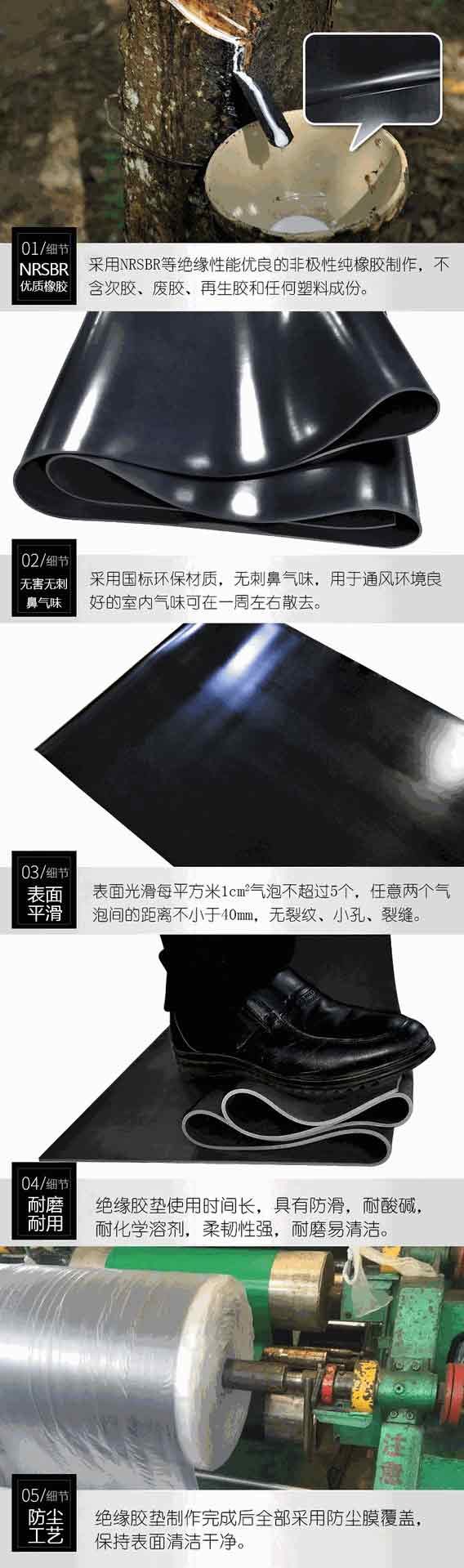 絕緣橡膠墊主要采用膠類絕緣材料制作,用NR,SBR和IIR等絕緣性能優(yōu)良的非極性橡膠制造。