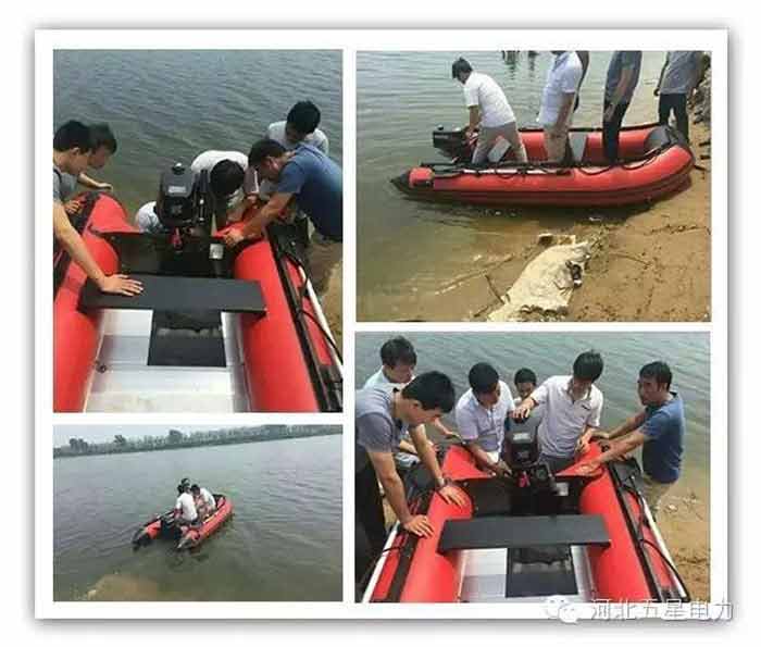 河北省一家水庫(kù)管理局從河北五星電力設(shè)備有限公司緊急采購(gòu)15艘防汛搶險(xiǎn)橡皮舟,河北五星“應(yīng)急響應(yīng)技術(shù)服務(wù)隊(duì)”三名隊(duì)員在客戶收到貨后,長(zhǎng)途奔波數(shù)百公里,為客戶現(xiàn)場(chǎng)調(diào)試設(shè)備,免費(fèi)提供操作技術(shù)培訓(xùn),受到客戶贊譽(yù)!